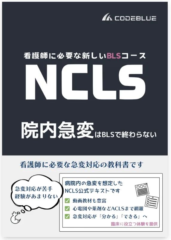 NCLSとはNursing Cardiac Life Supportの略称です。2024年(令和7年)5月から全国展開している新しいトレーニングコースであり、看護師に必要な急変対応を学ぶことができるコースです。